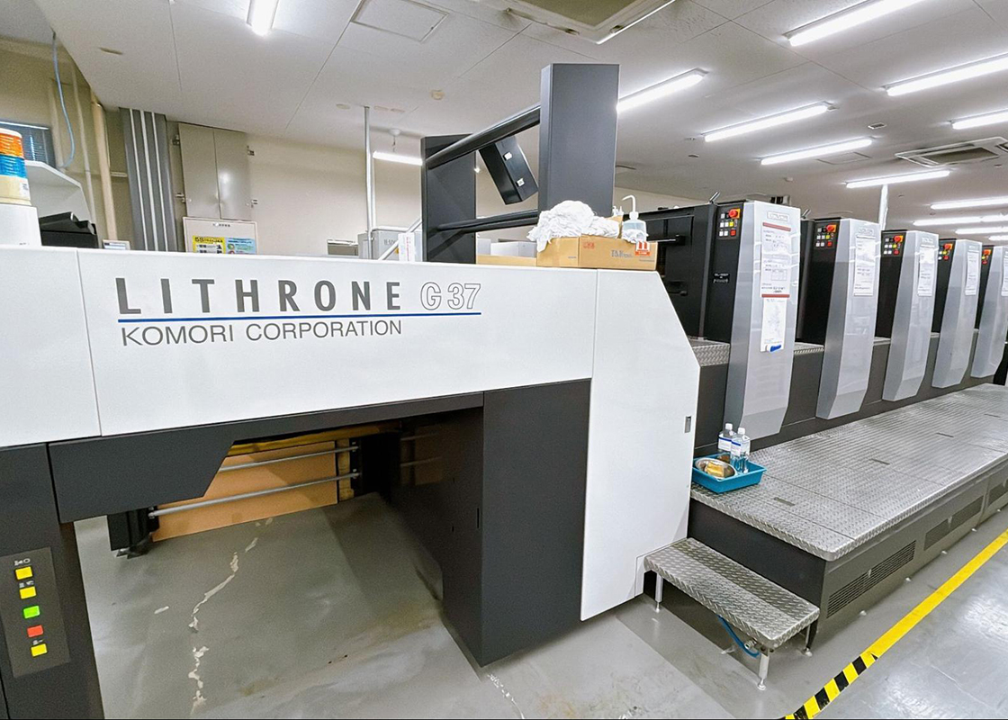 通常はC(シアン)、M(マゼンタ)、Y(イエロー)、K(ブラック)のプロセスカラー4色のみ印刷ができるのですが、こちらの機械はそれに1色プラスして5色一気に印刷することができます。