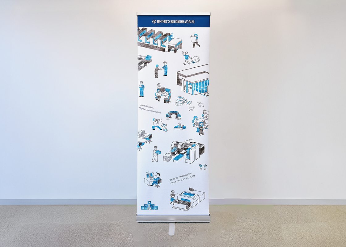 既存の印刷物の表紙デザインを活かして、イベント時に設置するバナースタンドを作成しました。