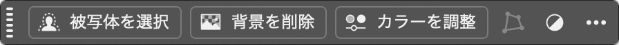 - 上部メニューの「ウインドウ」ー「コンテキストタスクバー」を表示し、左側にある[被写体を選択]ボタンをクリックする。
