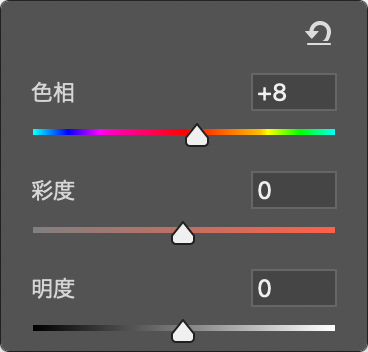 なお、対象が白や黒、グレーといった無彩色の場合は、もともとの色情報がないため、「色相」スライダーを動かしても色を調整することはできません。