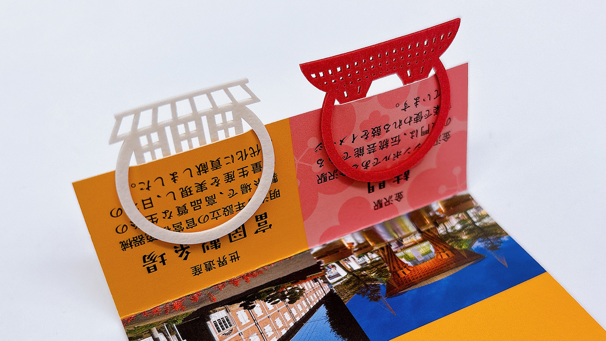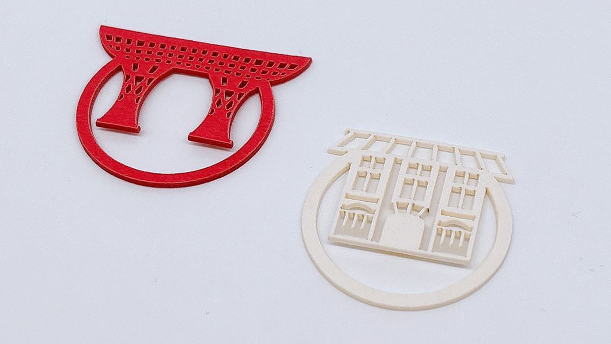 その記念として、両都市のシンボルである「鼓門」と「富岡製糸場」をモチーフとした紙クリップを作成しました。